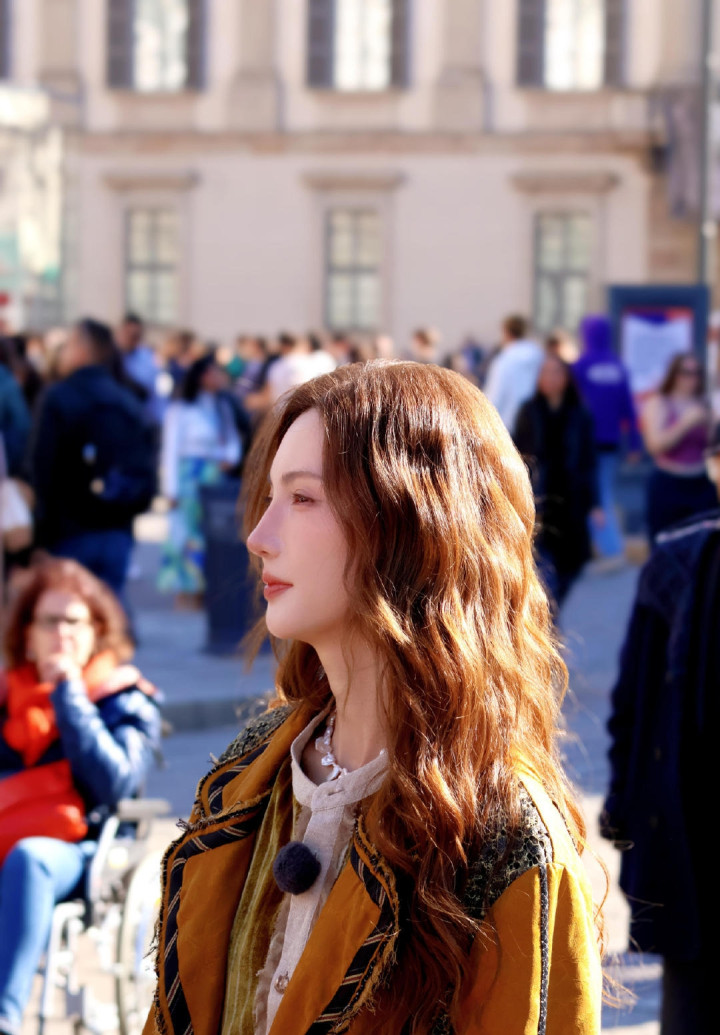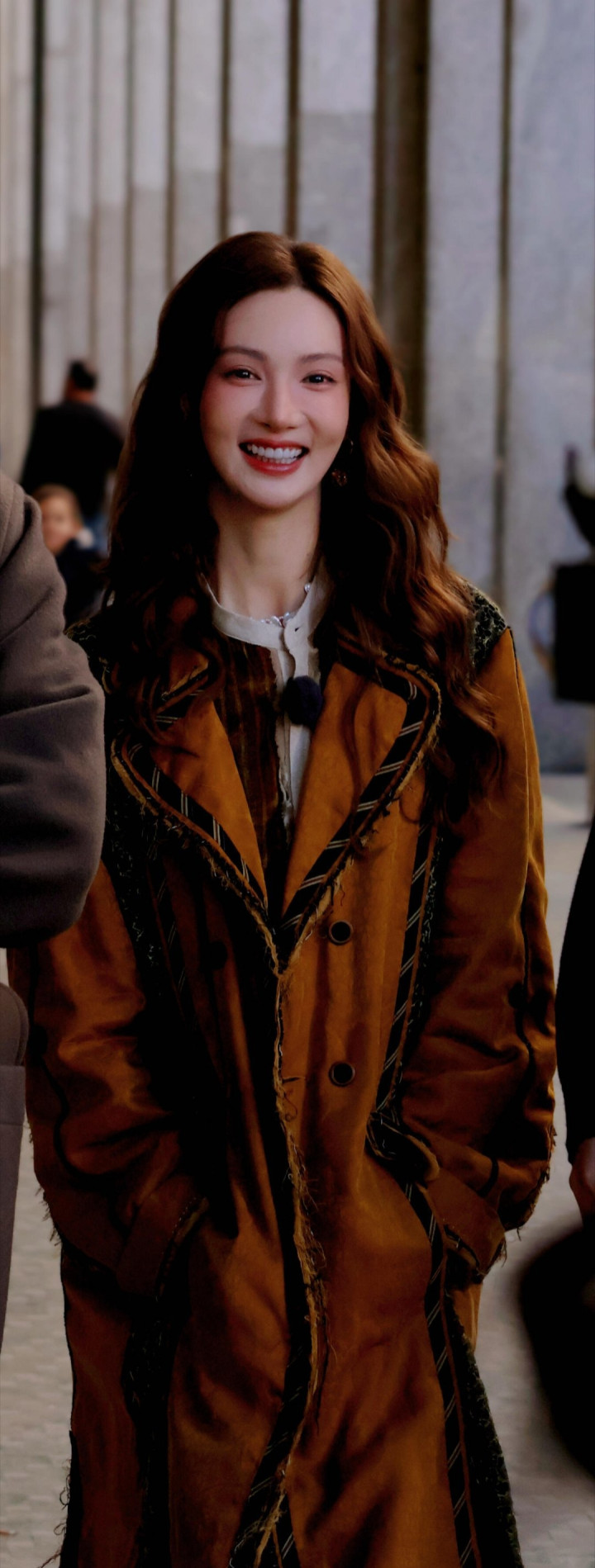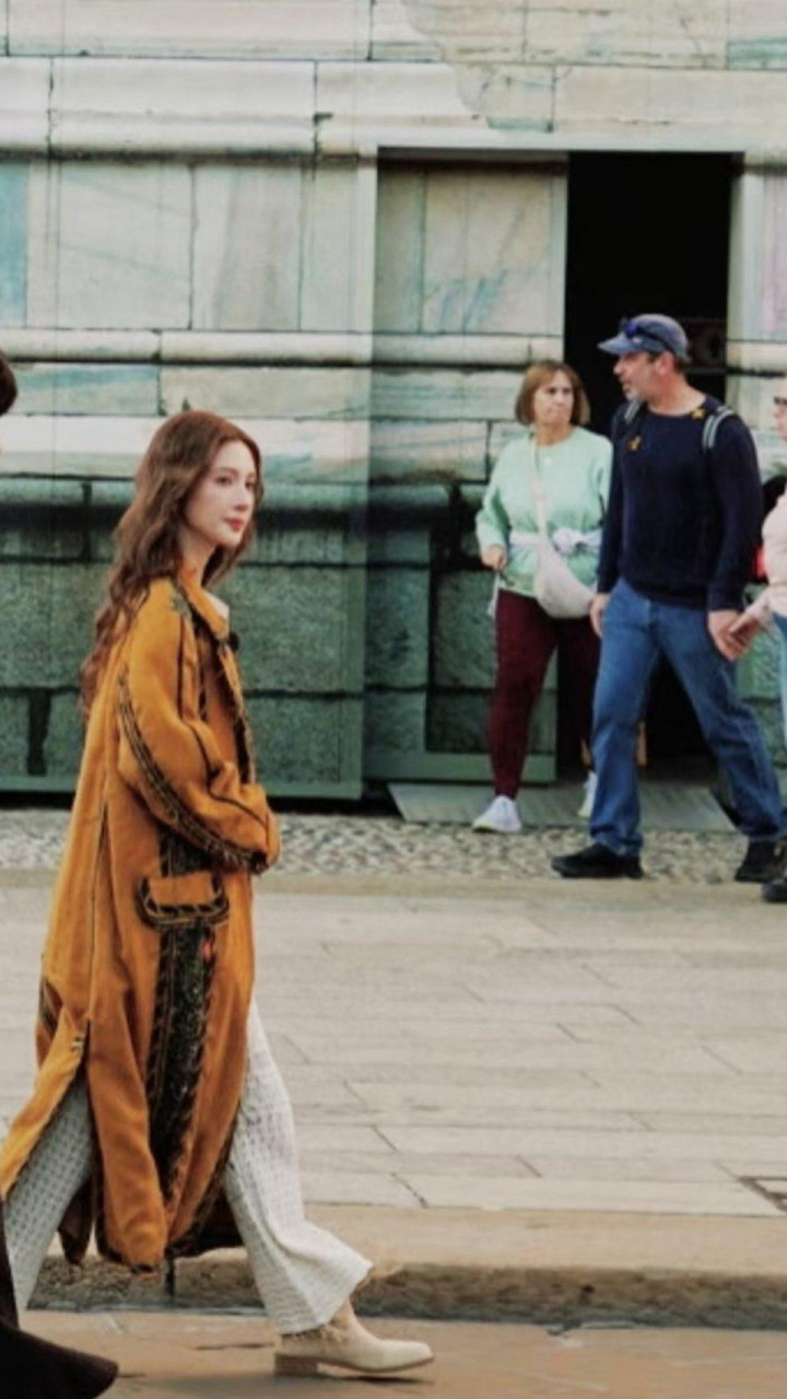 金晨《现在就出发3》米兰路透, 穿黄色大衣, 笑容明媚, 复古时尚